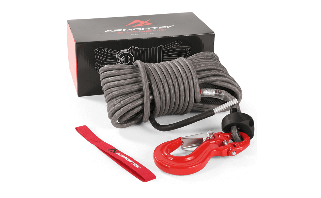 Dieses komplette Seilwinden-Set enthält ein hochfestes 9/16" x 65,6' (14 mm x 20 m) Armortek Extreme Synthetikseil, einen robusten Haken, einen Seilstopper und einen Handschonergurt und bietet Ihnen somit alles, was Sie für sicheres und zuverlässiges Winden benötigen.