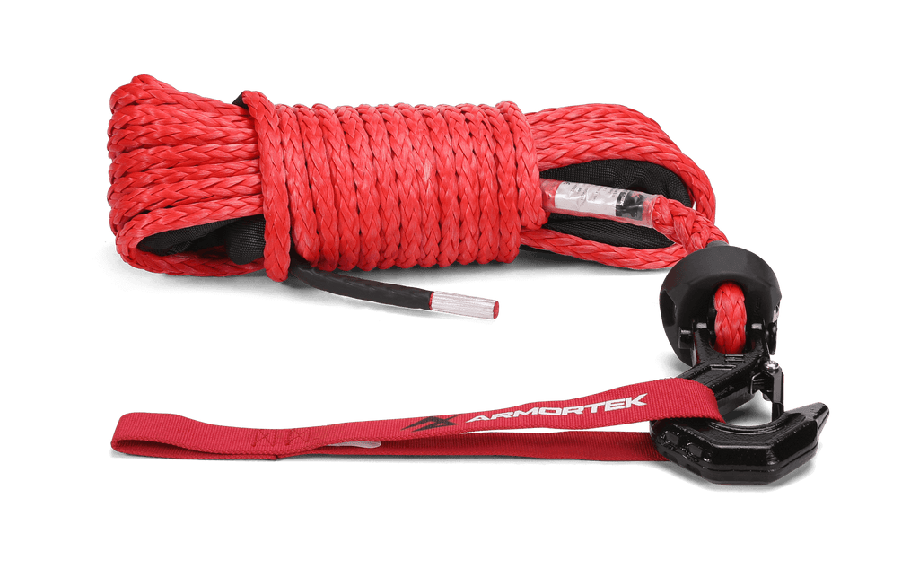 Das synthetische Windenseil von Armortek besteht aus HMPE, einer Faser, die fester als gehärteter Stahl ist. Es durchläuft ein spezielles Vorstreckverfahren und ist mit einer abriebfesten Armortek-Beschichtung versehen, die für maximale Haltbarkeit sorgt.