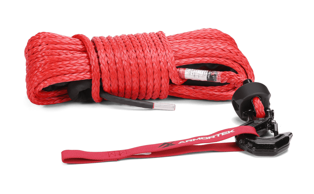 Das synthetische Windenseil von Armortek besteht aus HMPE, einer Faser, die fester als gehärteter Stahl ist. Es durchläuft ein spezielles Vorstreckverfahren und ist mit einer abriebfesten Armortek-Beschichtung versehen, die für maximale Haltbarkeit sorgt.